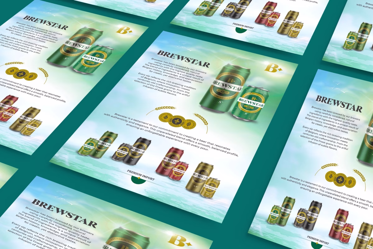 The masterfully conceptualised packaging design for Brewstar served as a rigorous exercise in discovering the flawless equilibrium between captivating aesthetics, supreme functionality, and the exacting technical constraints inherent to printing on aluminium. Placed firmly within an exceptionally competitive category, vastly dominated by colossal brands and their overwhelmingly powerful visuals, our mandate was unequivocally clear: to engineer a design that commands absolutely unparalleled attention right at the shelf, whilst authentically transmitting the highly distinctive personality of a premium Belgian beer.