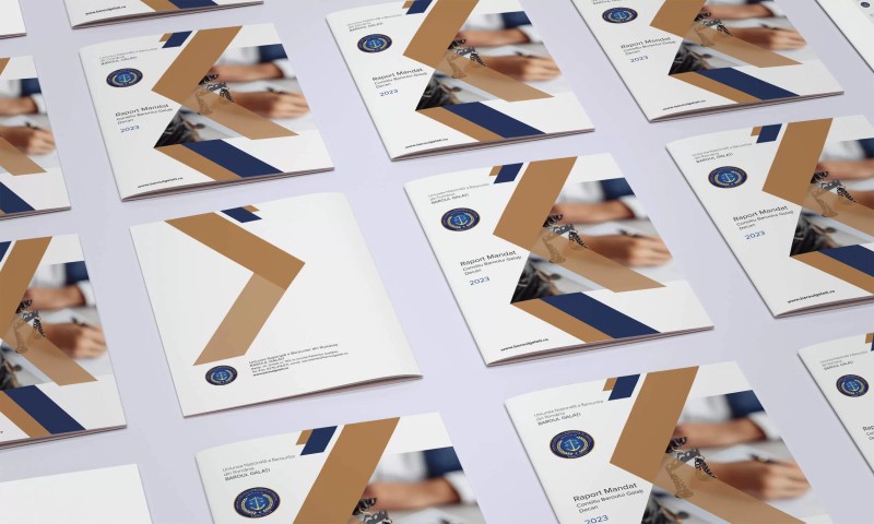 Culorile alese, albastrul închis și tonurile aurii, transmit autoritate și profesionalism, consolidând astfel imaginea Baroului Galați. Logo-ul se adaptează cu ușurință diverselor medii, de la documente tipărite, precum foi cu antet, mape sau cărți de vizită, până la materiale digitale sau de promovare, precum roll-up-uri și rapoarte de activitate. Identitatea vizuală este astfel completată prin elemente personalizate care asigură coerență și recunoaștere în orice context.