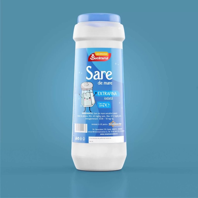 Bucătarul - brand al companiei gălățene Renaissance Star - propune publicului sare ambalată în recipiente cu un design modern și atrăgător, ușor de recunoscut la raft. Sub forma de recipiente de plastic, diverse dimensiuni, sau pungi de hârtie, sarea Bucătarul își găsește locul pe masa oricărui consumator. În design-ul de brand am urmărit o abordare care să reflecte profesionalismul, calitatea și simplitatea. Am ales o paletă de culori care evocă atmosfera bucătăriei și fonturi elegante, ușor de citit pentru a sugera tradiție și rafinament, subliniind astfel calitatea produsului. Logo-ul ce include un simbol legat de bucătărie (boneta chef-ului) este distinctiv și ușor de recunoscut. Am folosit spațiu negativ pentru a evita aglomerația și pentru a conferi etichetei un aspect curat și bine organizat, iar informațiile despre tipul de sare oferită, proveniența și orice caracteristică specială sunt incluse într-o manieră clară și concisă, conferind etichetei de produs un aspect curat și bine organizat.