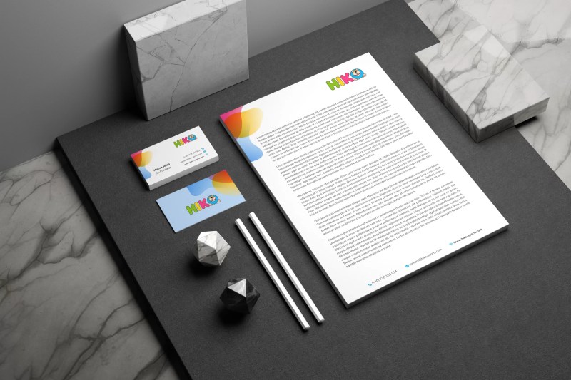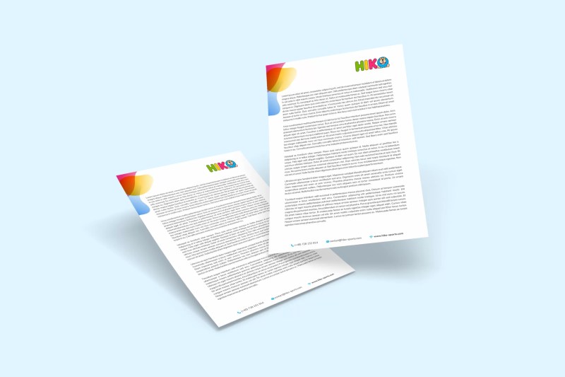 Logo-ul Hiko, modern și prietenos, reflectă perfect spiritul ludic al brandului, fiind o expresie vizuală a bucuriei și energiei copilăriei. Identitatea vizuală a fost concepută cu atenție la detalii, folosind culori vii, linii fluide și fonturi accesibile, ce redau un aer relaxat și plin de viață. De la cărți de vizită și mape de prezentare până la cataloagele cu produse, toate materialele de comunicare păstrează o coerență vizuală și un stil jucăuș, consolidând unicitatea și memorabilitatea brandului Hiko în ochii părinților și copiilor deopotrivă.