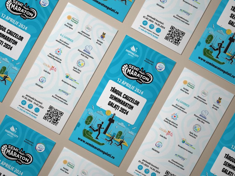De câțiva ani deja, lucrăm identitatea vizuală a unui proiect care demult constituie un punct de reper în peisajul comunității gălățene - Semimaratonul Galati. Anual, acest eveniment atrage atenția asupra beneficiilor mișcării fizice și - dupa cum precizează și echipa de organizare - propune gălățenilor (dar nu numai) un eveniment outdoor în care întreaga familie se poate regăsi.