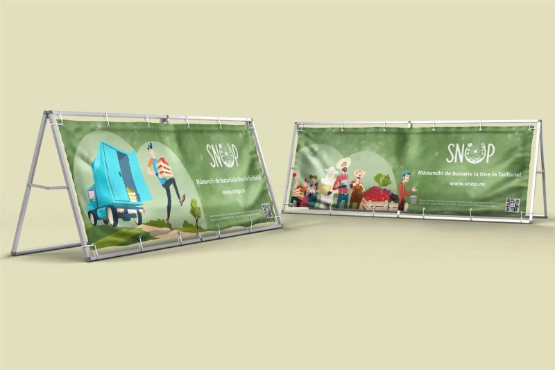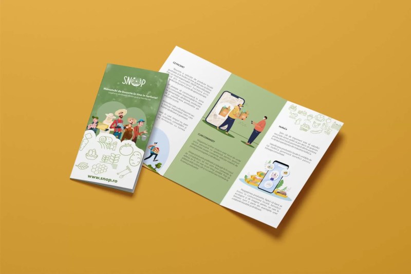 Procesulul creativ al brandului Snop a pornit de la designul logo-ului - un element important ce trebuia să transmită că acest business este veriga sănătoasă ce leagă producătorii locali din județul Suceava de consumatori - și a continuat cu creionarea fiecărui element ce face parte din identitatea vizuală (mape de prezentare, afișe, pliante, bannere, textile, etc.)